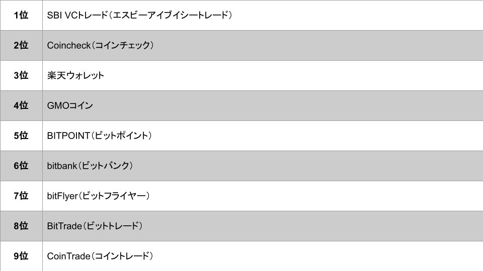 2025年12月、価格.comの暗号資産取引所の人気ランキングは以下の通りです。